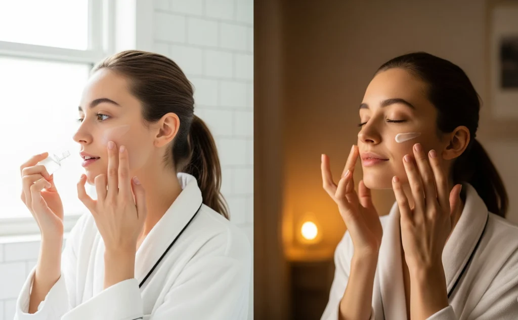 Picture this: Your skin wakes up like you—groggy but eager for coffee. Or maybe it’s the splash of freshness from a morning cleanse? That’s the a.m. wake-up call your skin needs. But at night, picture your skin kicking back with soothing tea, ready for some serious R&R. Simply put, an am vs pm skincare routine cares for what your skin craves at each hour. It’s like wearing shades during the day and snuggling in cozy socks at night. Each has a purpose, helping you adapt better.